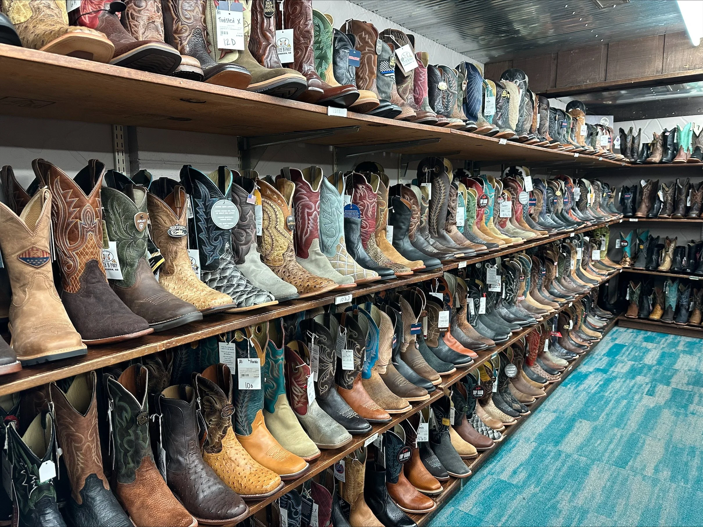 Here in South Dakota, western wear isn’t just fashion—it’s functional and cultural. Ranchers, farmers, cowboys, cowgirls and families rely on gear that works as hard as they do. For decades, the Hitch’n Post has ensured they’re ready for anything that comes their way. It’s that deep connection to lifestyle and livelihood that has kept the store anchored in the community for over half a century. From boots made of ostrich and elephant leather to rugged denim that stands up to the seasons, Hitch’n Post is a part of everyday life in Aberdeen and beyond.